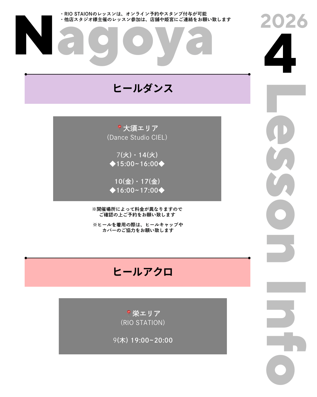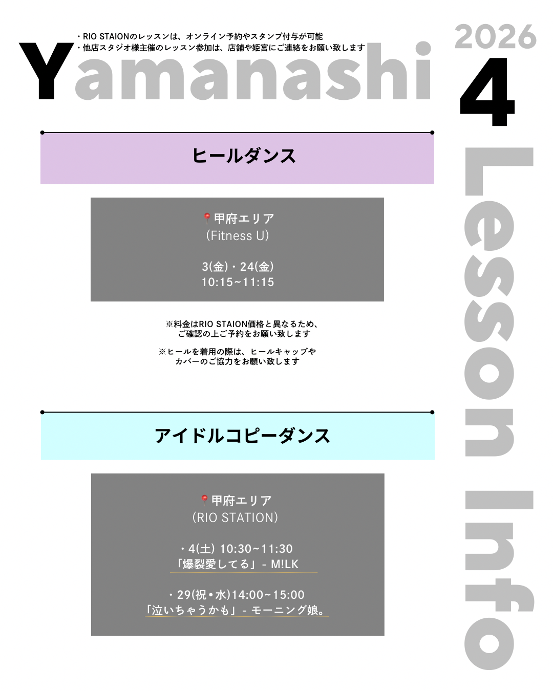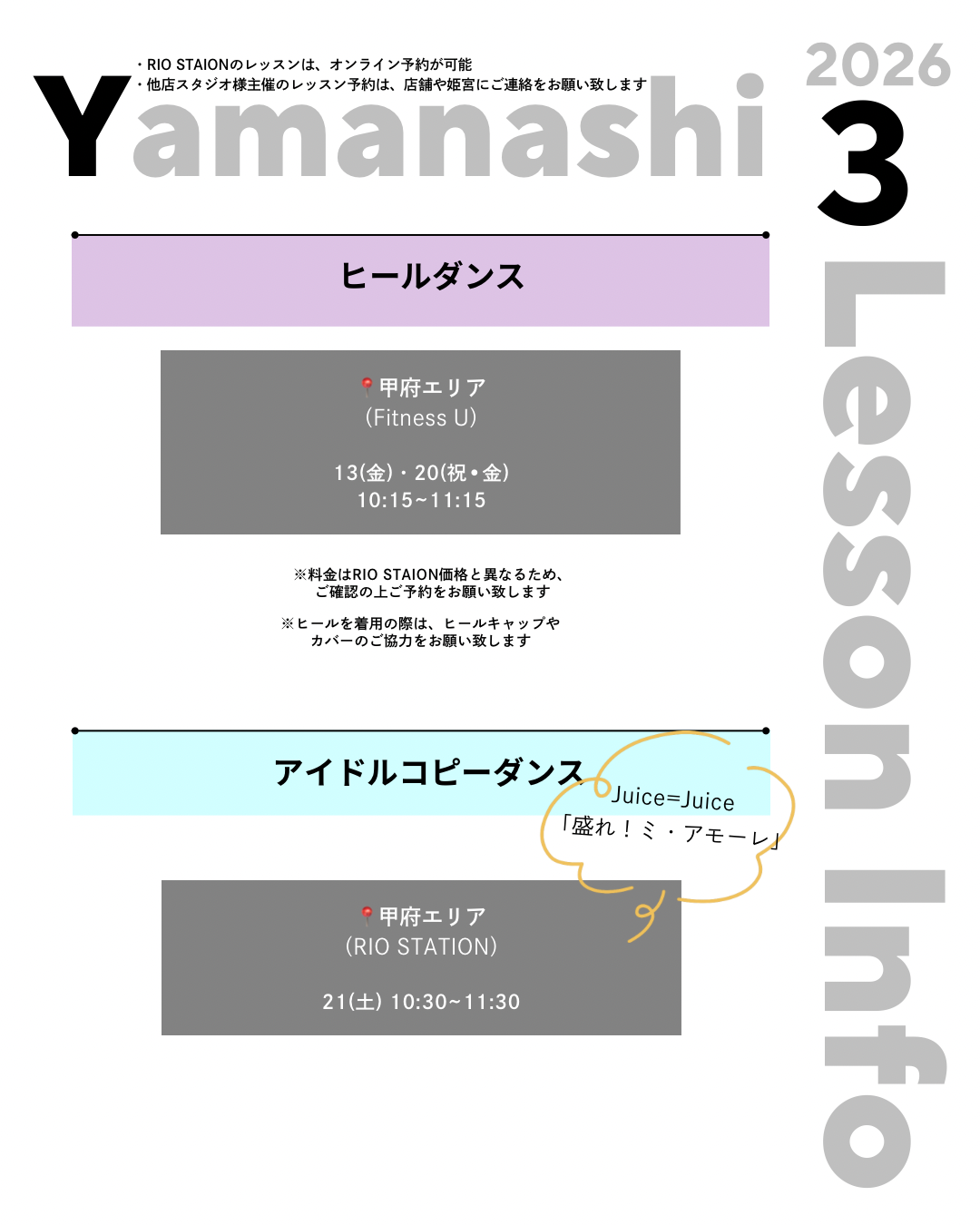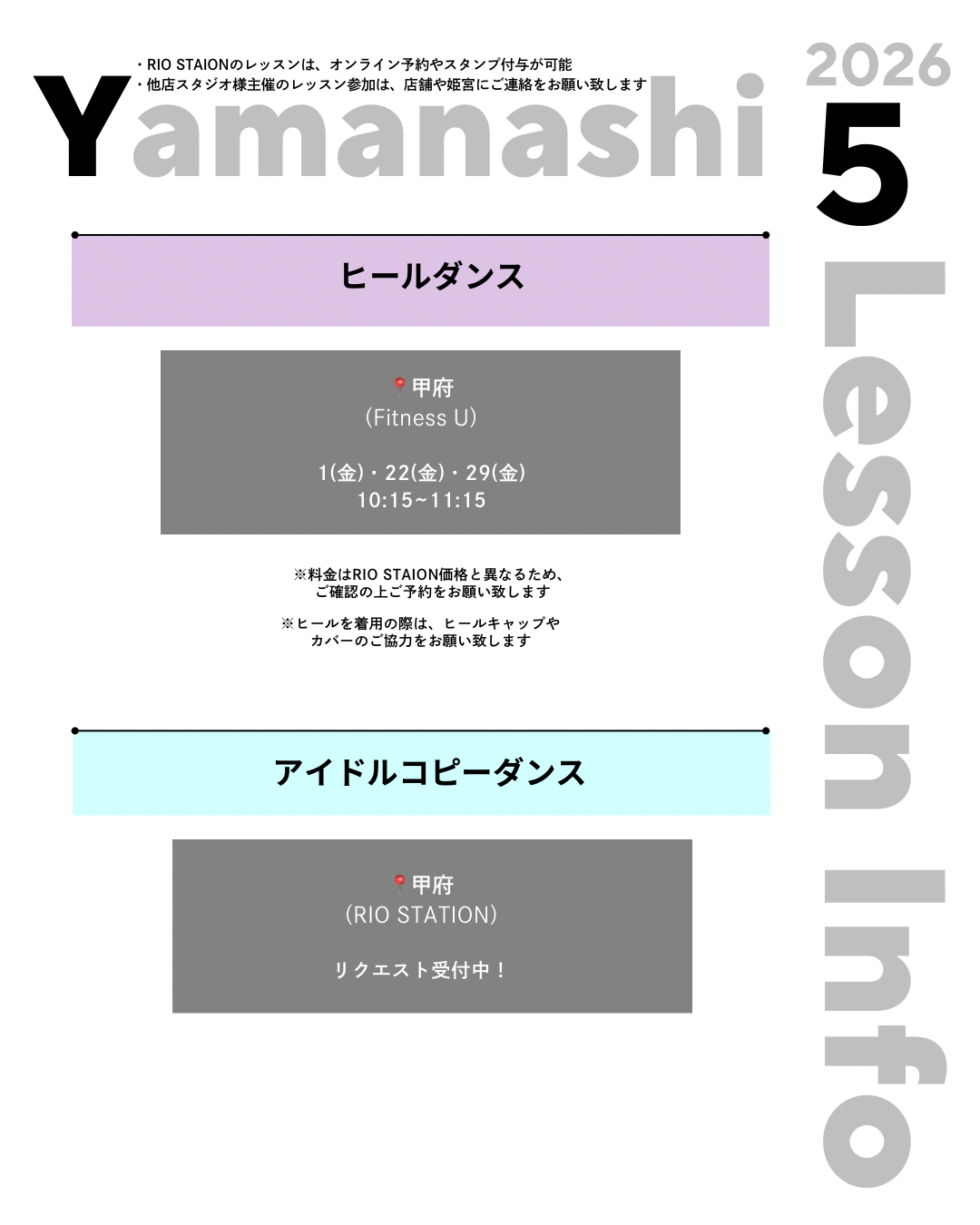 ※1. RIO STATION主催のレッスン以外は対象外