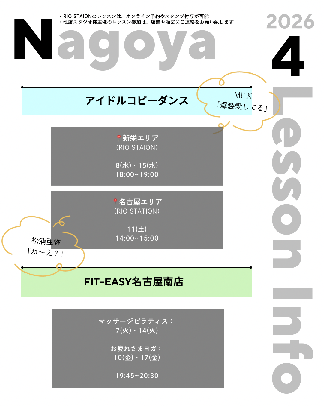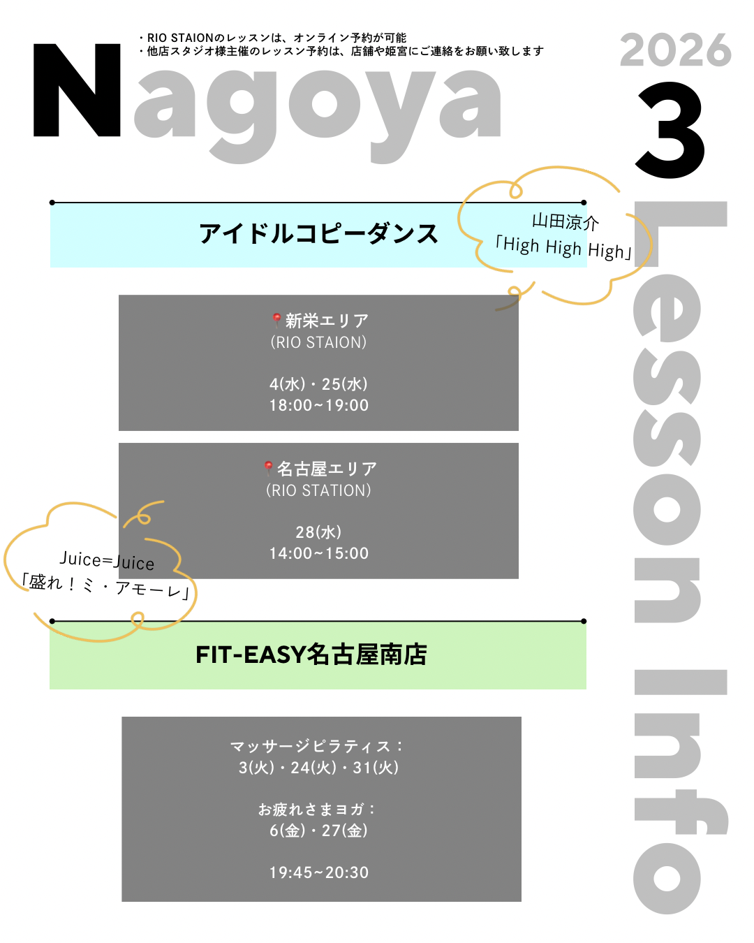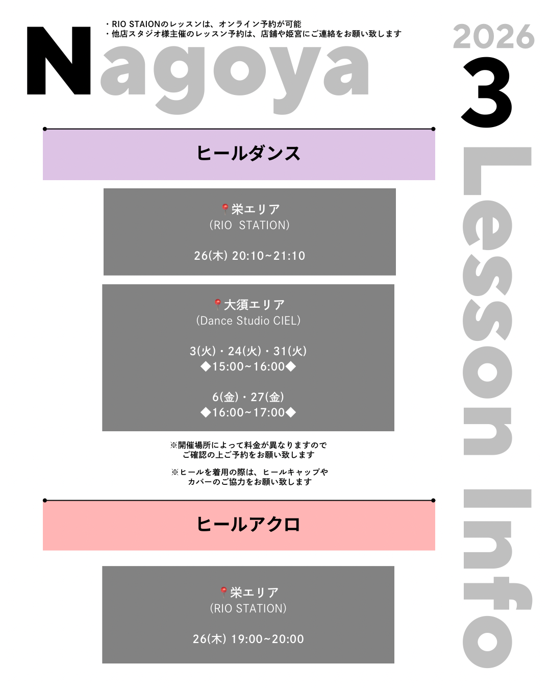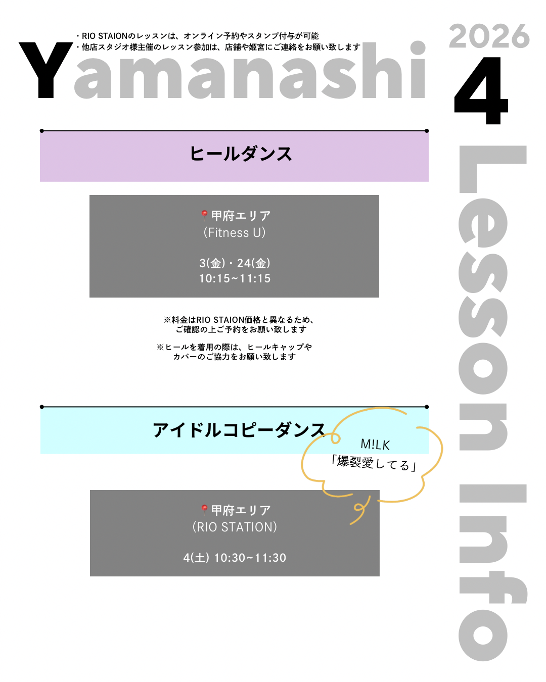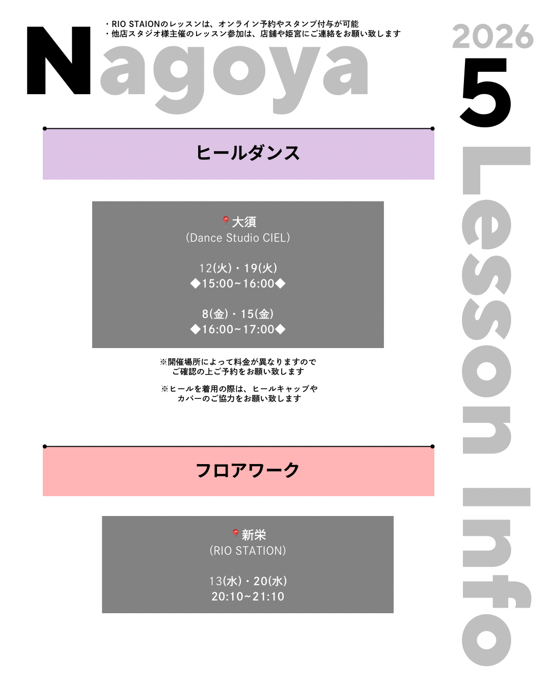 ※1. RIO STATION主催のレッスン以外は対象外