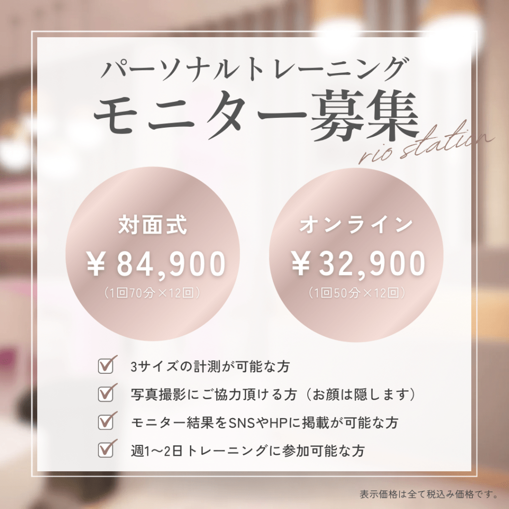 RIO STATIONでは年内最後のパーソナルトレーニングモニターを募集しております!!
